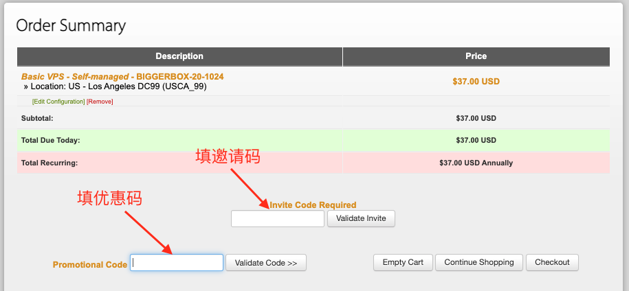 在购买页面需要输入邀请码(Invite code)才能下单,否则无法下单,或者会提示Invalid or used invite code: