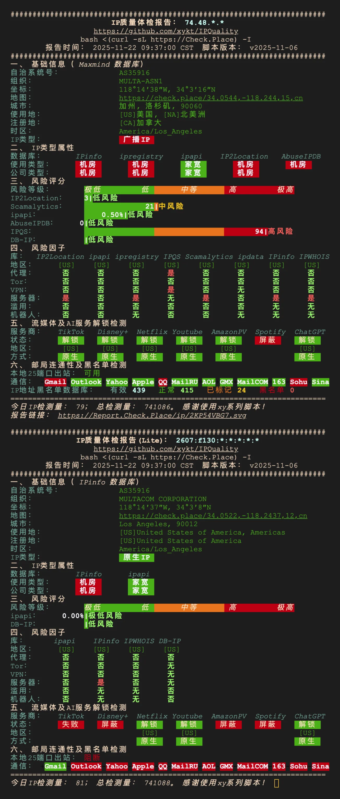 IPv4/IPv6 : ✔ Online / ✔ Online