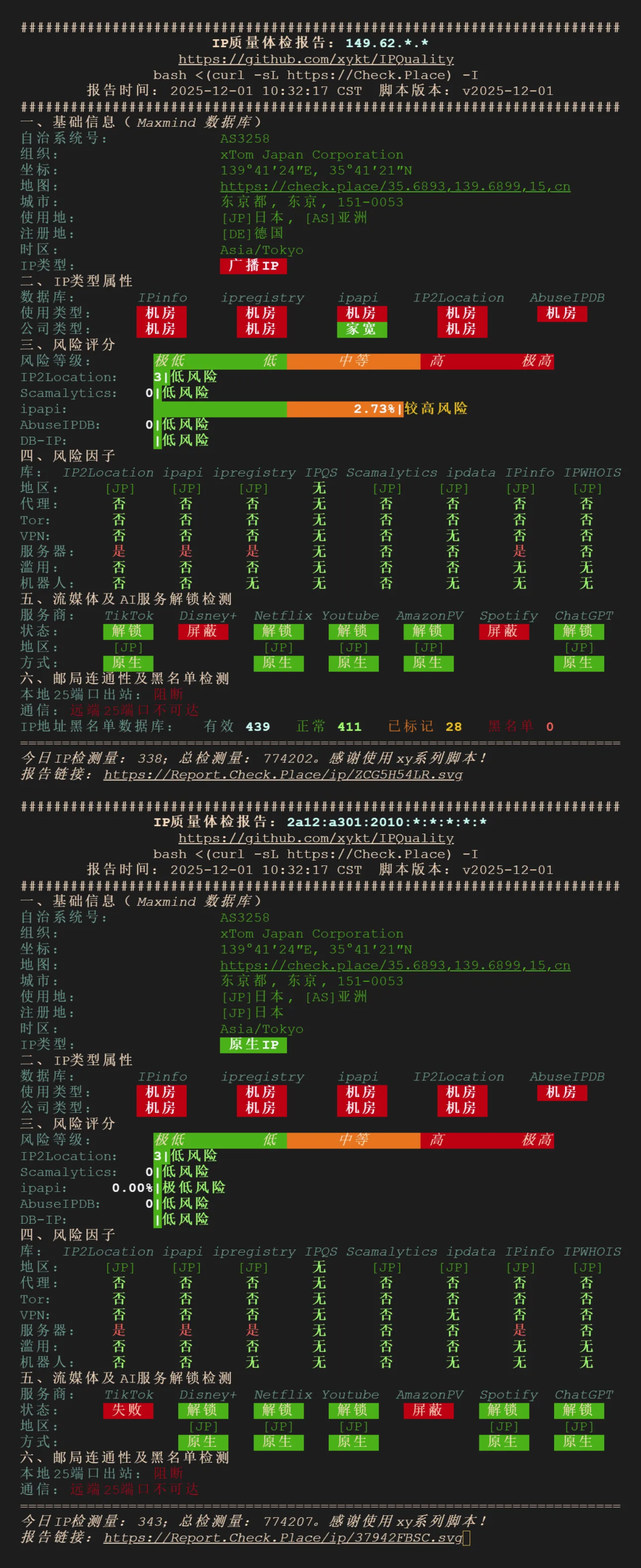 v.ps(xTom旗下)云服务器提供多地区高速网络,包括香港、新加坡、美西、日本、欧洲及澳大利亚等地,支持三网优化及高端线路(如CN2 GIA、AS9929等),标配1Gbps端口。本文主要对日本东京简单的测试。