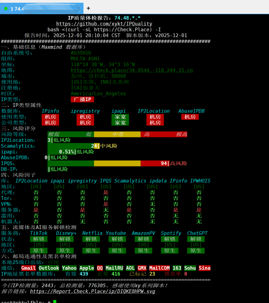 机房:洛杉矶,5个IPv4+/64 IPv6,24/7 Support